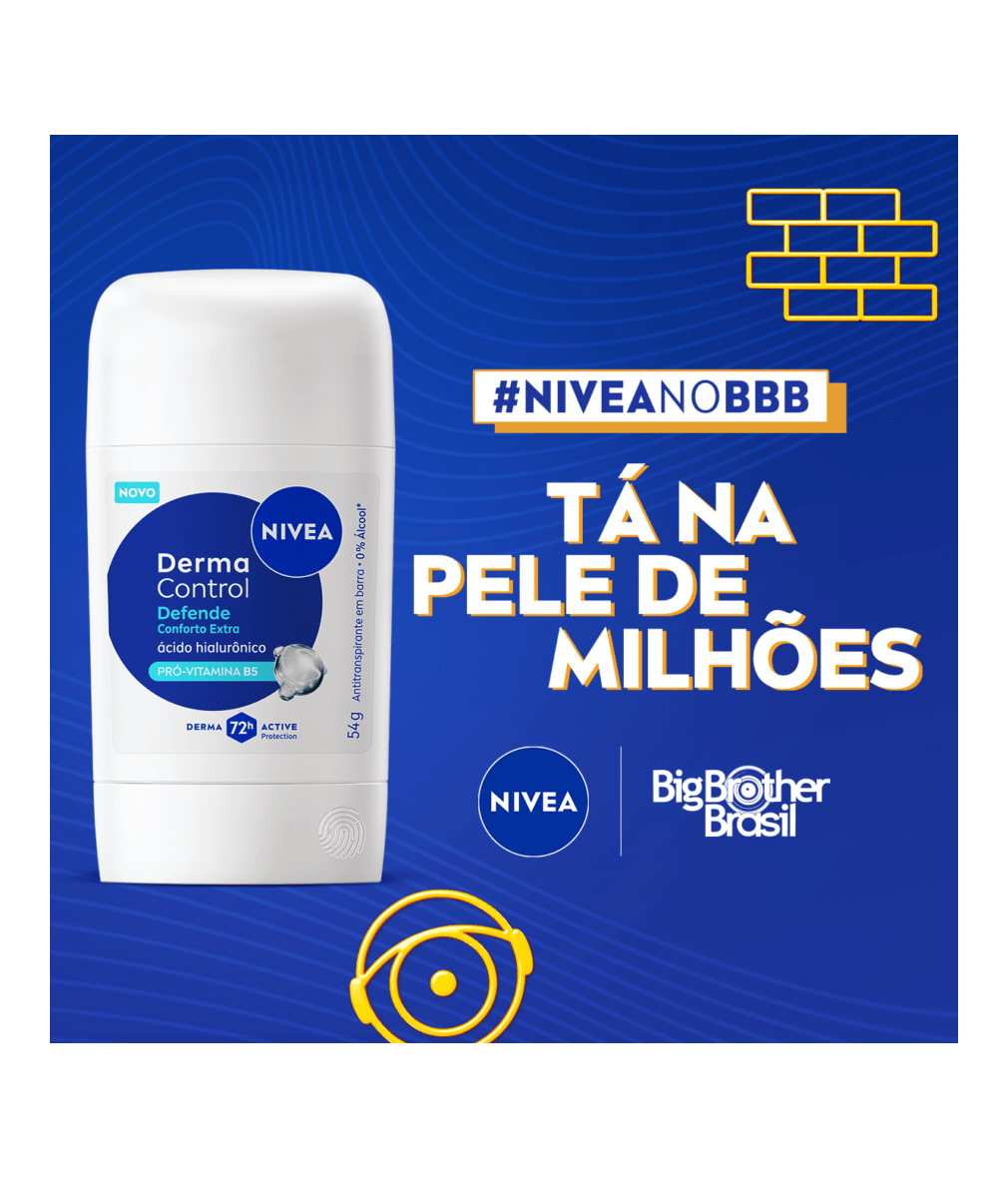 NIVEA Desodorante Stick Derma Control Defende oferece proteção 72h contra o suor e o mau odor, enquanto cuida das axilas com Ácido Hialurônico puro e Pró-Vitamina B5. Sua fórmula sem álcool etílico é ideal para pele sensível, prevenindo irritações e coceira, inclusive após a depilação.