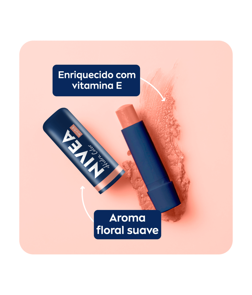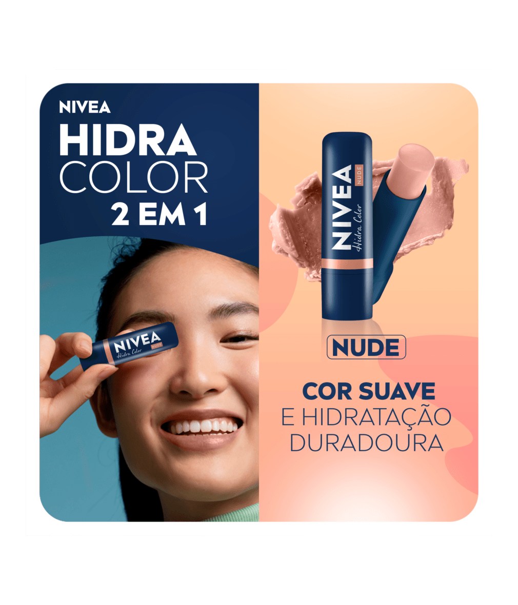 NIVEA Hidratante Labial Hidra Color 2 em 1 Nude é um produto versátil que tem uma cor incrível e cuidado confiável da NIVEA, combinados em um único produto.