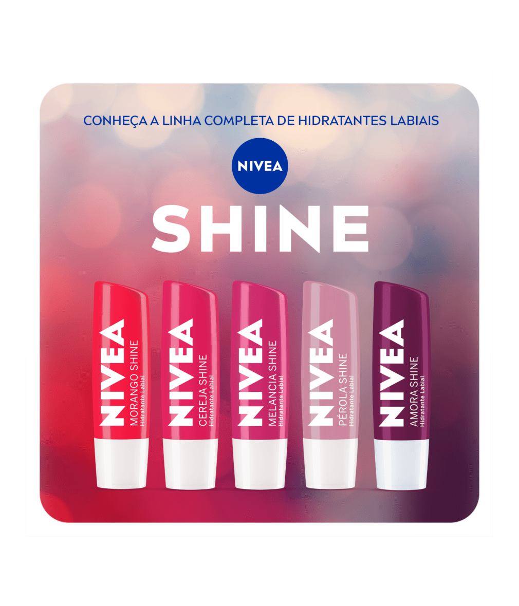 Com manteiga de karité, óleo de abacate e de jojoba, NIVEA Hidratante Labial Pérola Shine hidrata os lábios por 24 horas e possui um delicado brilho perolado.