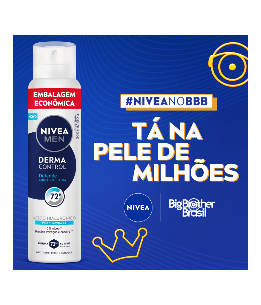 NIVEA MEN Desodorante Aerossol Derma Control Defende é um antitranspirante desenvolvido para oferecer proteção intensa contra o suor e o mau odor, cuidando da pele das axilas com uma fórmula especial que inclui Ácido Hialurônico e Pró-Vitamina B5.