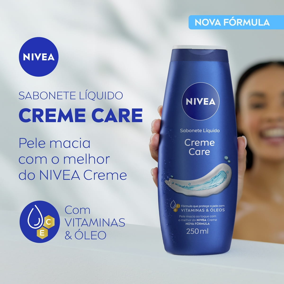 NIVEA Sabonete Líquido Creme Care limpa suavemente, hidrata e protege a pele, com o icônico perfume NIVEA Creme. Dermatologicamente testado para cuidar de você todos os dias.