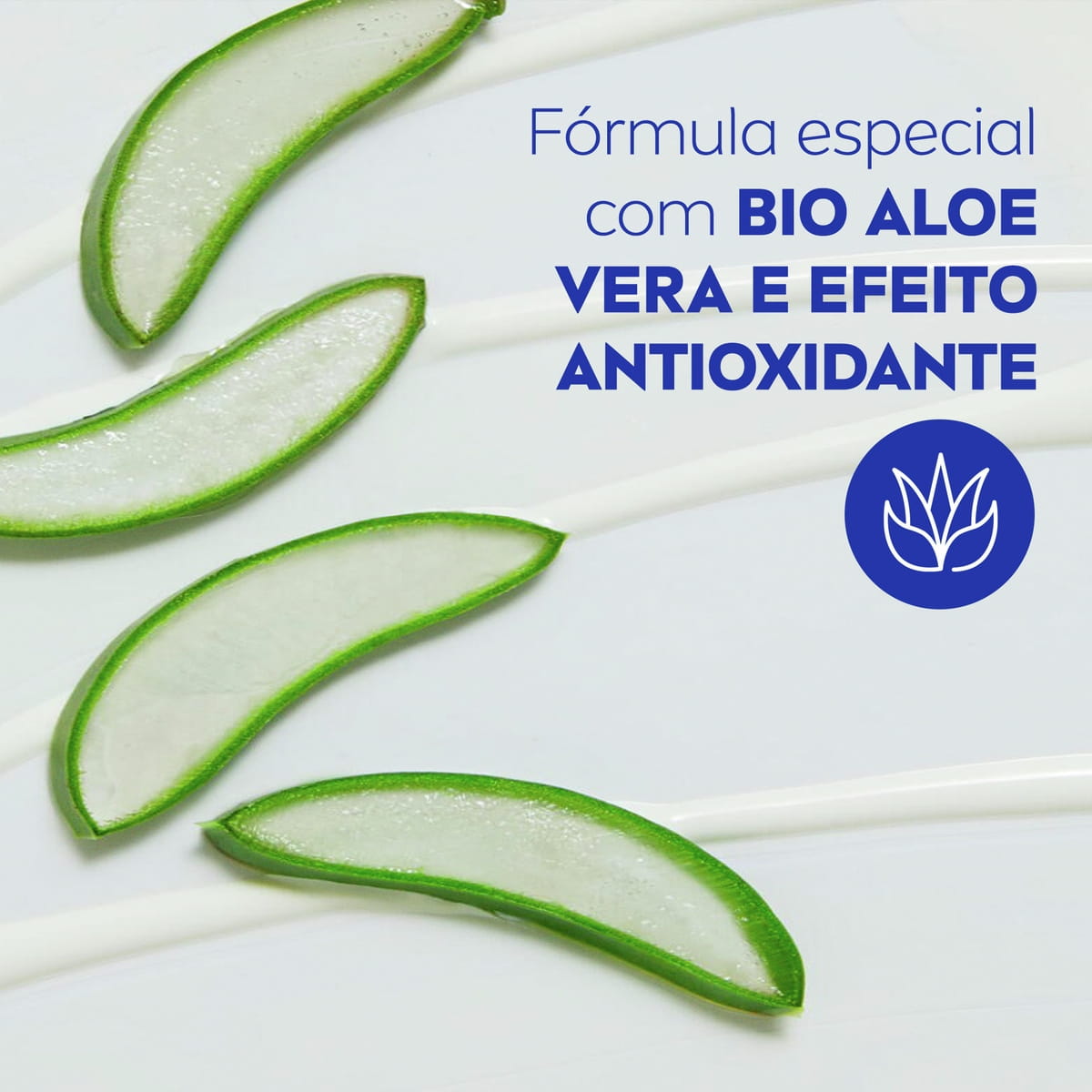- fórmula em gel sem perfume e com ingredientes como bio-aloe vera e antioxidante que reparam a pele e previnem a sensação de vermelhidão.