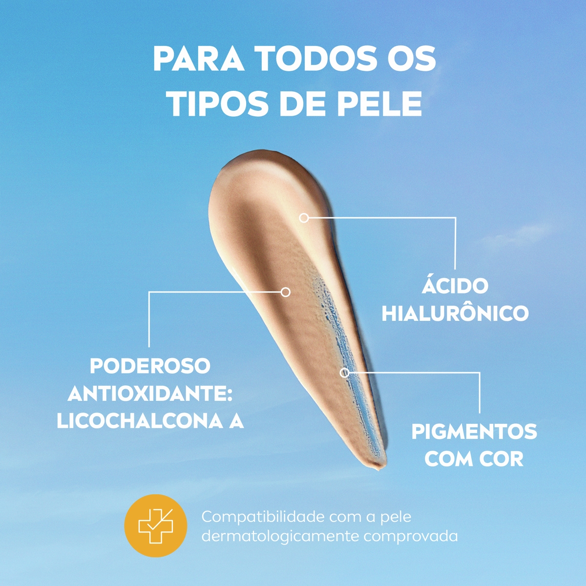 - Para todos os tipos de pele: Nosso fluido com cor ultraleve com ácido hialurônico não é oleoso, não é pegajoso, hidrata a pele e proporciona uma cobertura uniforme e de aparência natural, com longa duração.