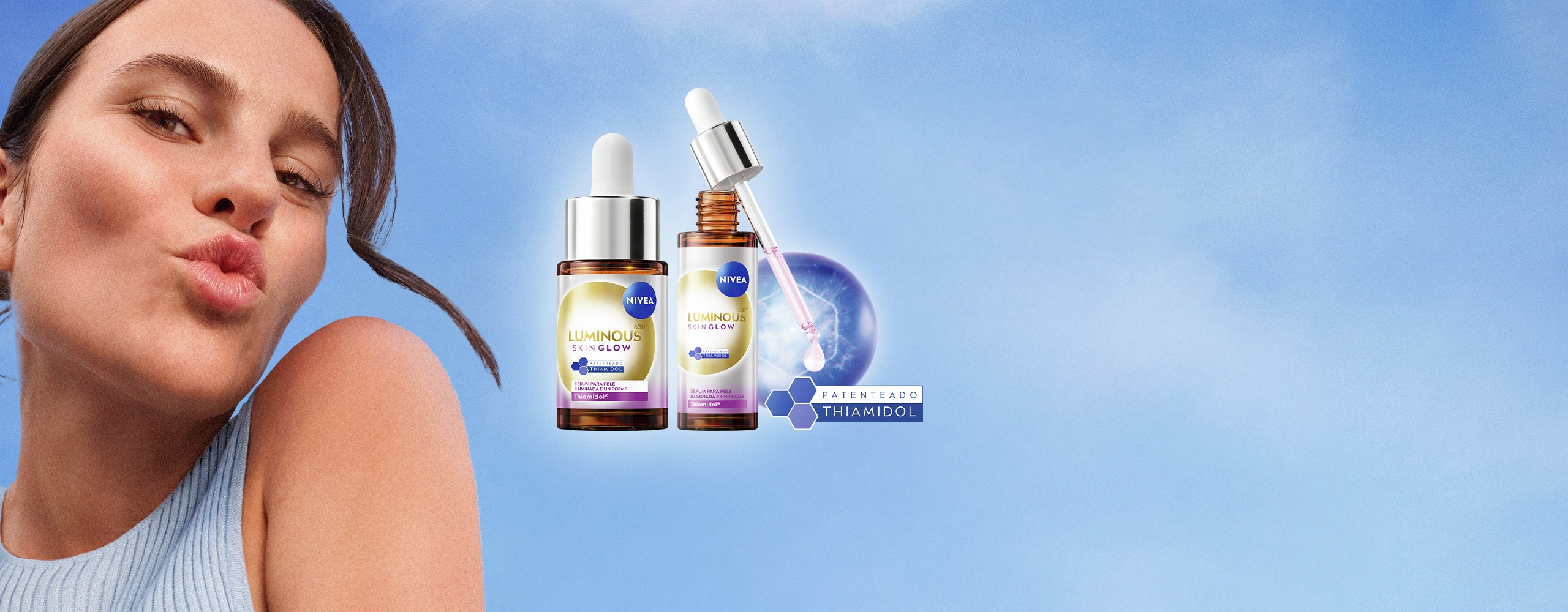 E você pode encontrar alguns deles combinados na nossa nova linha NIVEA LUMINOUS630® Skin Glow, que oferece 4 vezes mais poder de luminosidade e está disponível em dois tamanhos (15ml e 30ml).*
