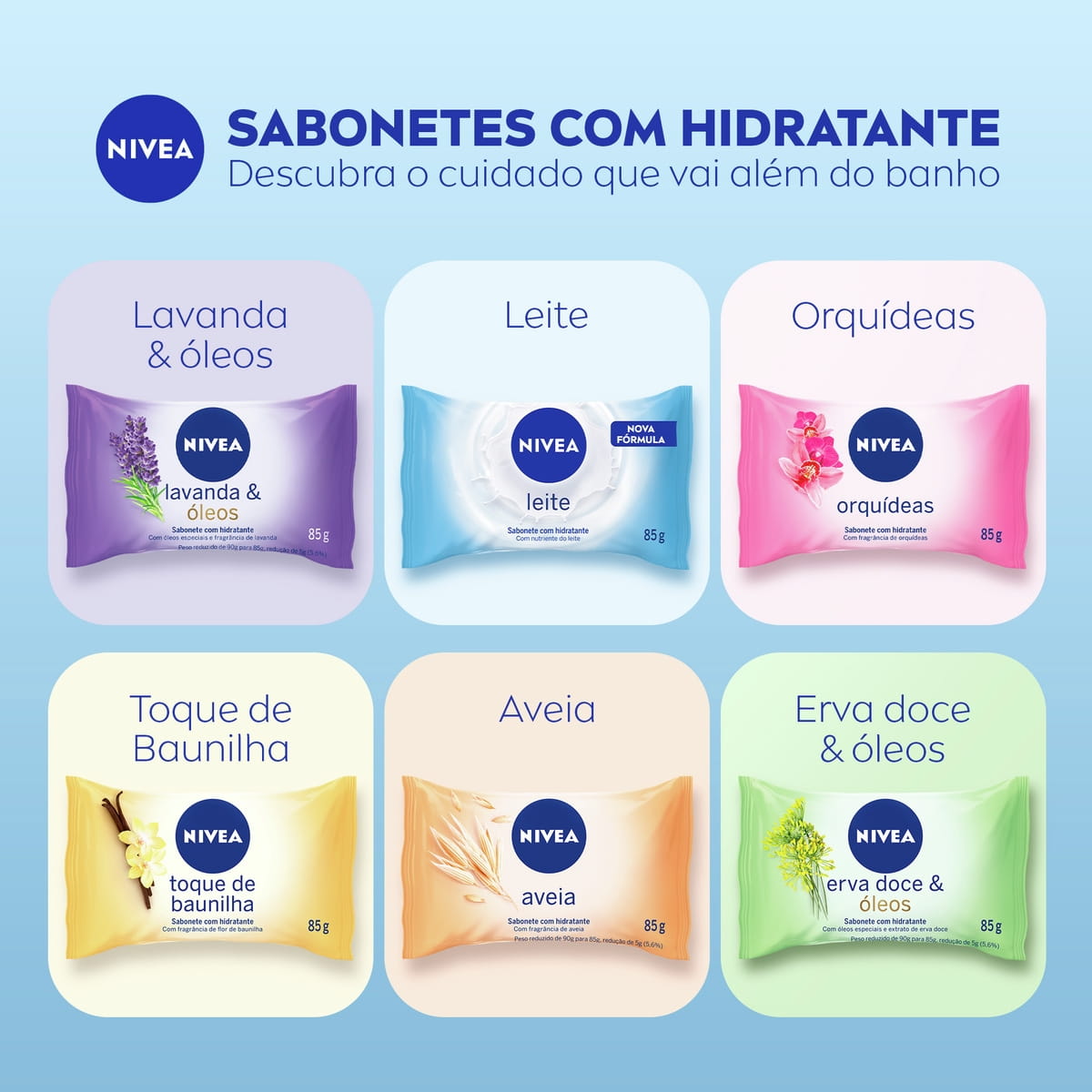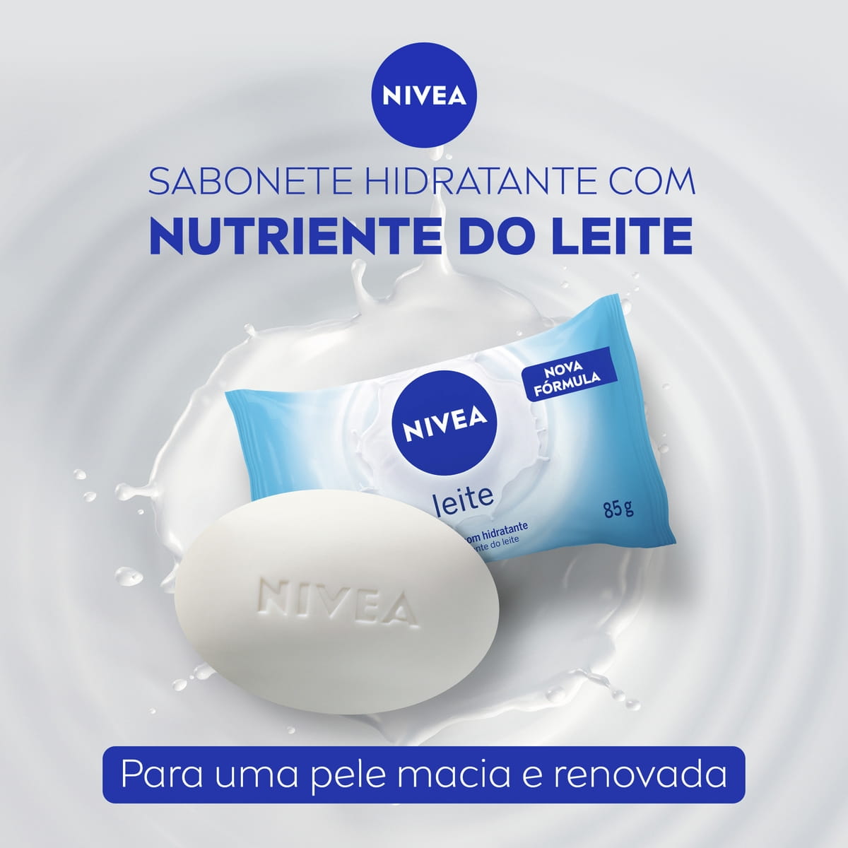 Tenha uma experiência única de carinho e cuidado com o sabonete NIVEA LEITE que possui espuma cremosa e uma suave fragrância para o seu banho. Sabonete com hidratante e nutriente do leite.